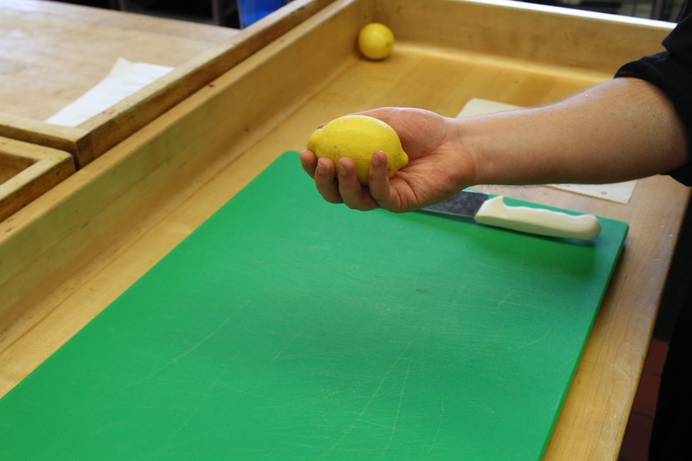 Cut a straight line from the middle of them lemon all the way to the edge of the lemon.