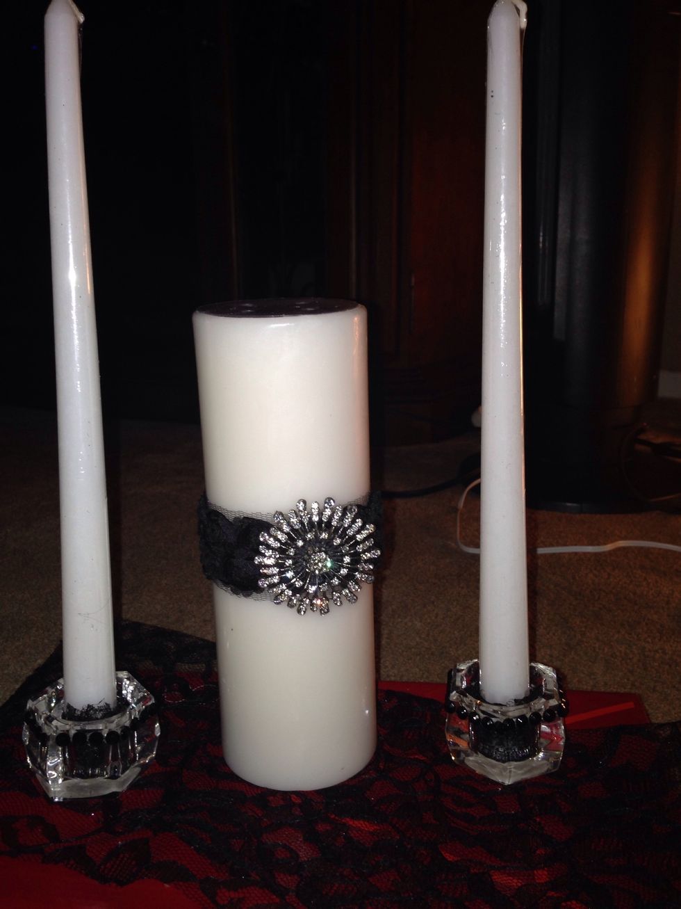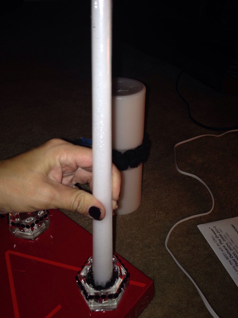 Put lace inside candle holder so that it may insure that the candlestick is secure