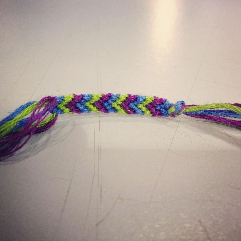 Make 2 knots just like before! Now move on to the next string so for me I'd put the purple aside and move on to the green.