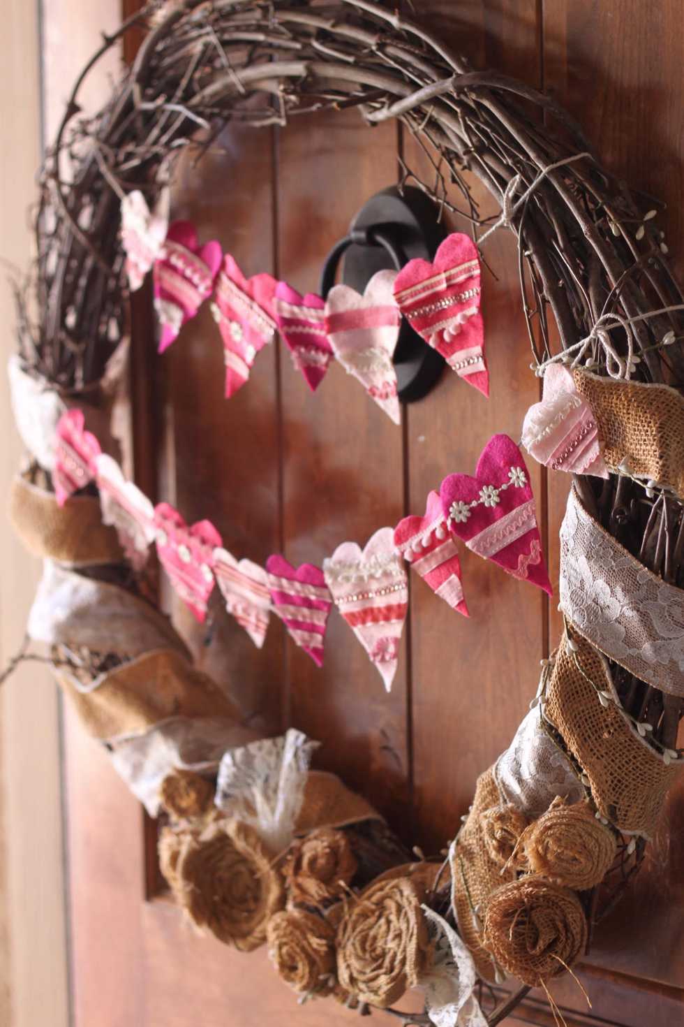 And then I recruited another helper. Lay the hearts to figure the length and that you have enough for your wreath size.