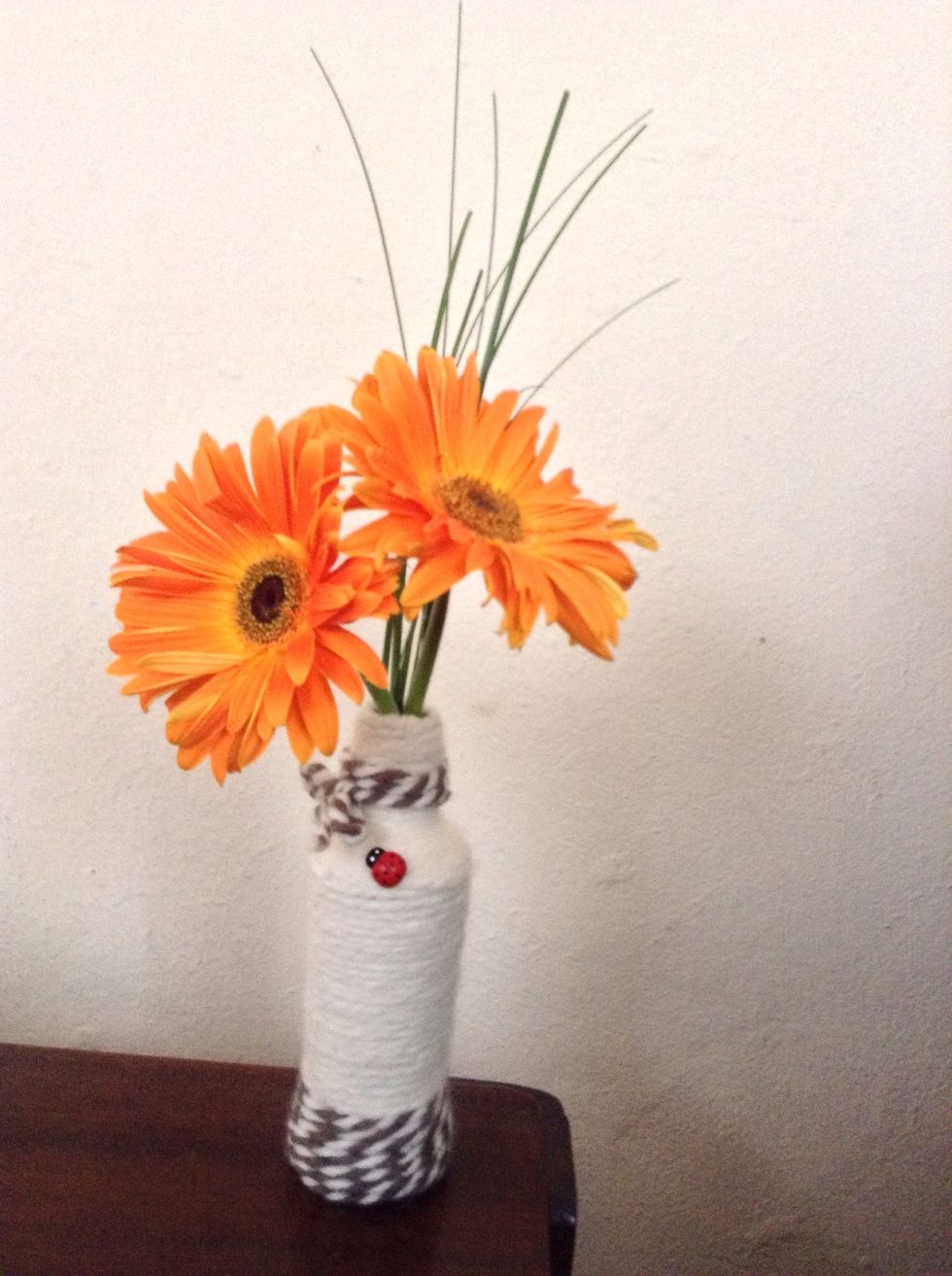 I added a little ladybug I had laying around with some glue and then I put some flowers in the vase.