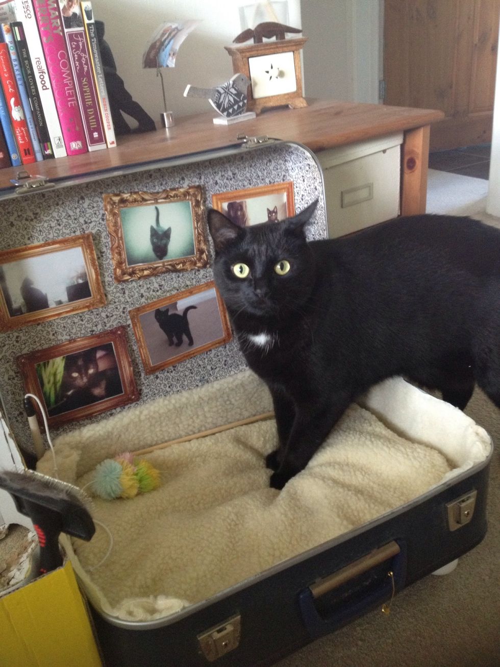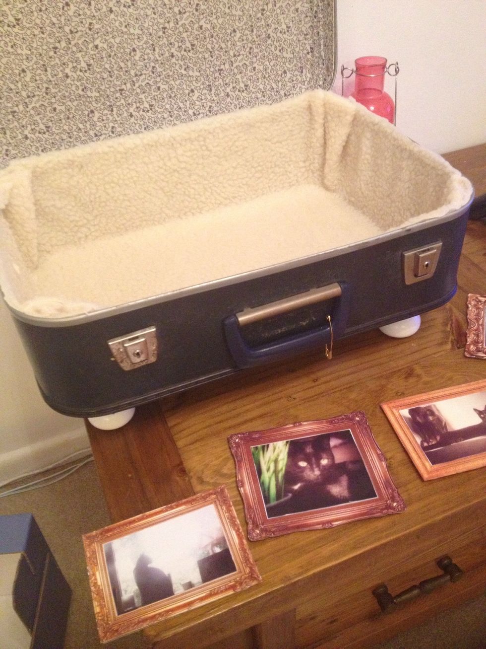So here's an old suitcase I found for a bargain in a local thrift shop. Time to get this turned into a gorgeous and rather chic-looking cat bed