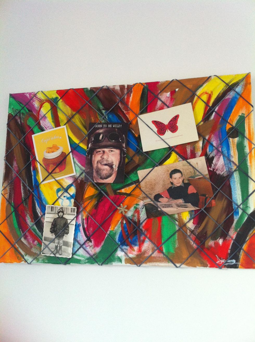 Then glue the other side on the diagonal. Make sure to pull tight so the strip is not loose on the canvas. It should vibrate a bit if you pull on it. Just like a guitar string.