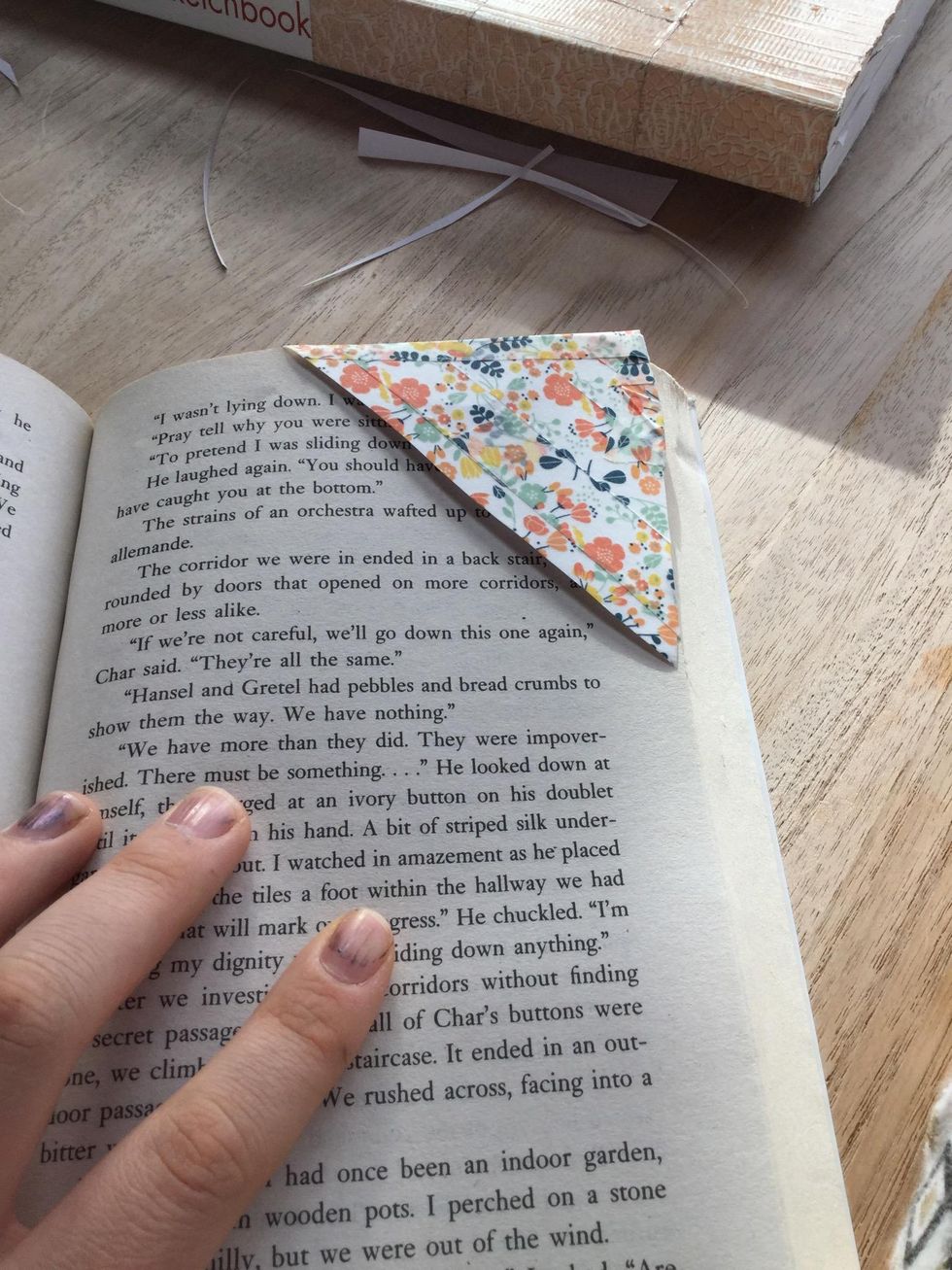 Cut your paper in a small square.Fold it in halfMeasure it in your bookCut it to fit it in the bookCut the bottom off so it is two pieces.Cover it in the tapeUntil it is finishedThe bottom should be openTa-da!