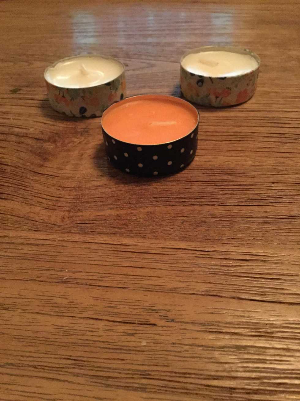 This is a really easy guide, there is just one step!Wrap the washi tape around the tea light.This is the finished product.I told you this was easy! This is cute and you can do this over and over and over!