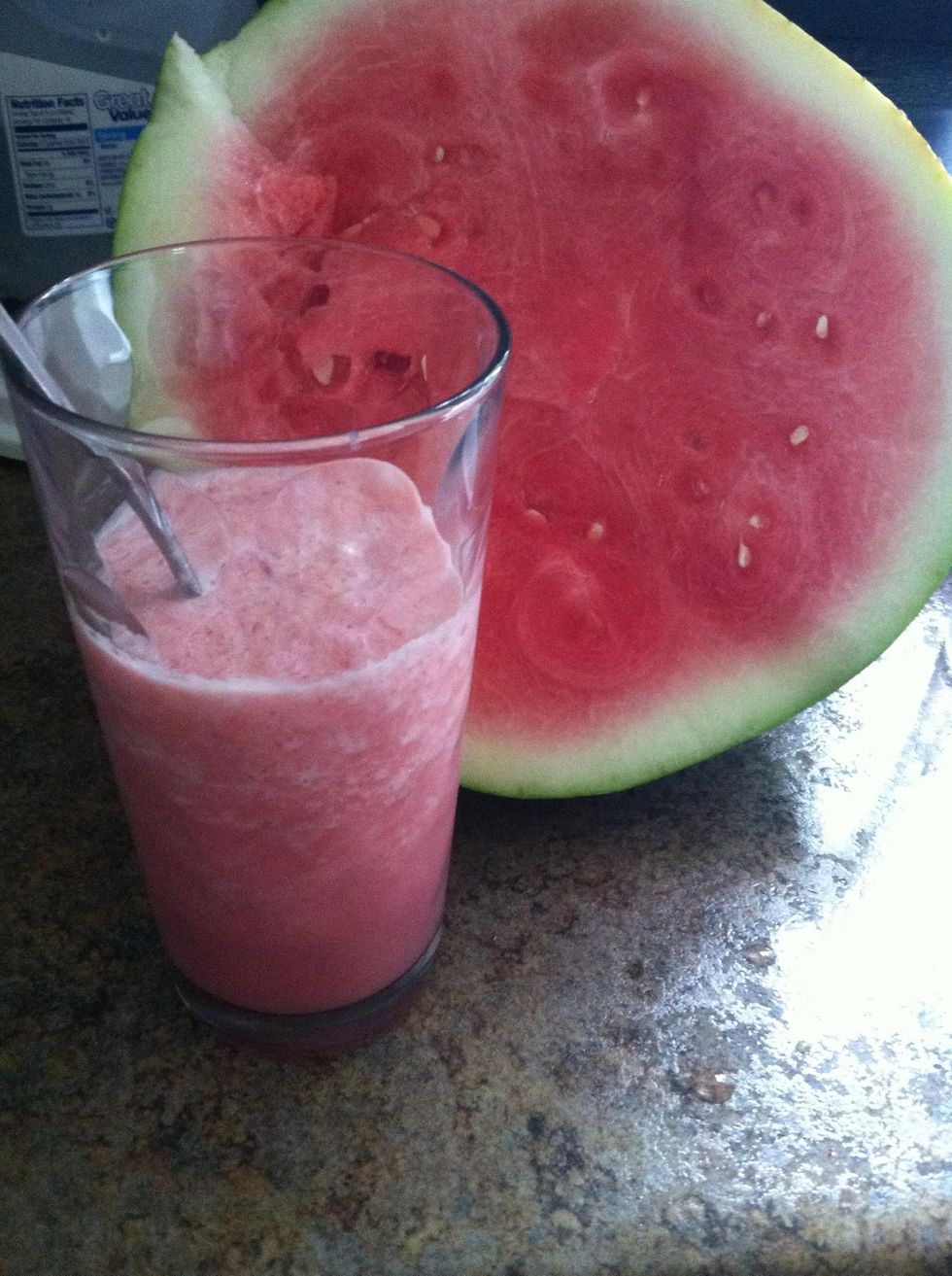 Blend in 2 cups of ice. I also added a little bit of honey to add some sweetness but that is optional.