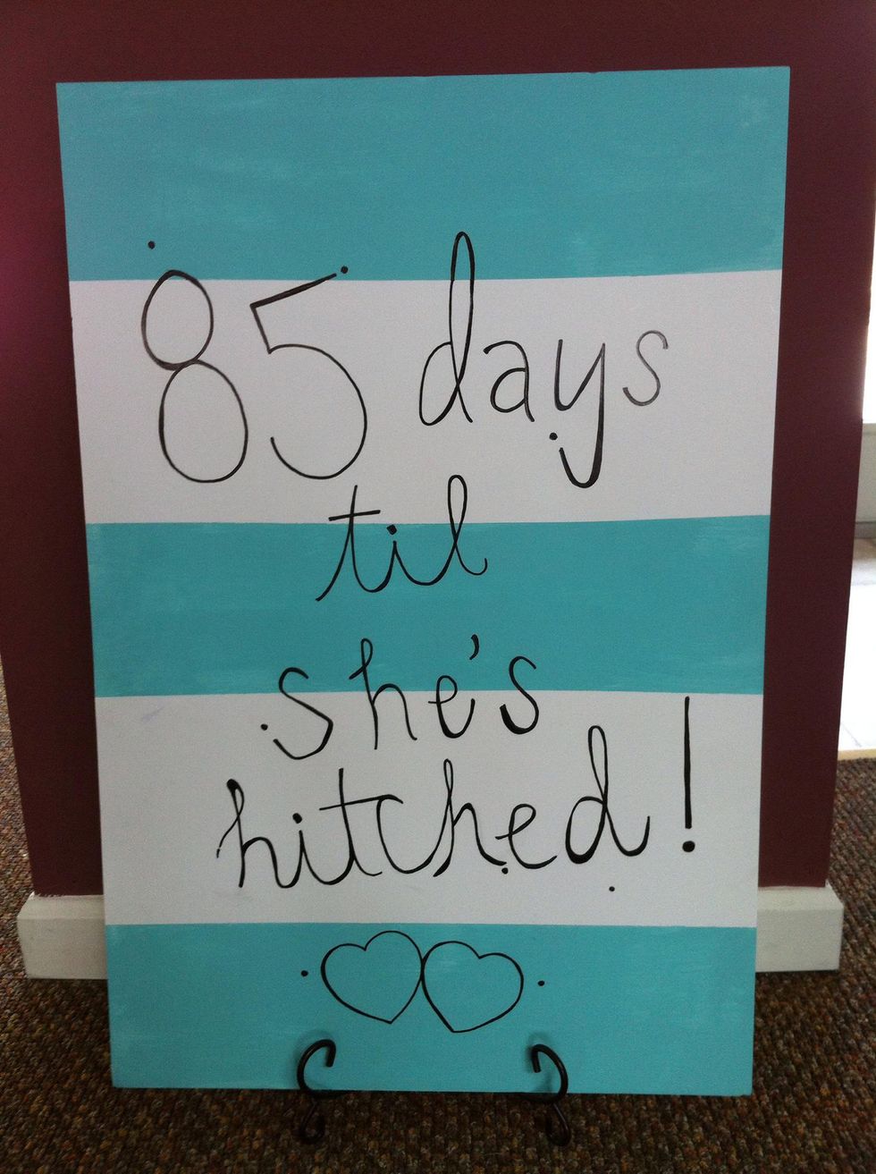 The last step is to write onto the board with a paint pen of your desired color " how many days left" before the bride is hitched. I made this for a friends bridal shower.