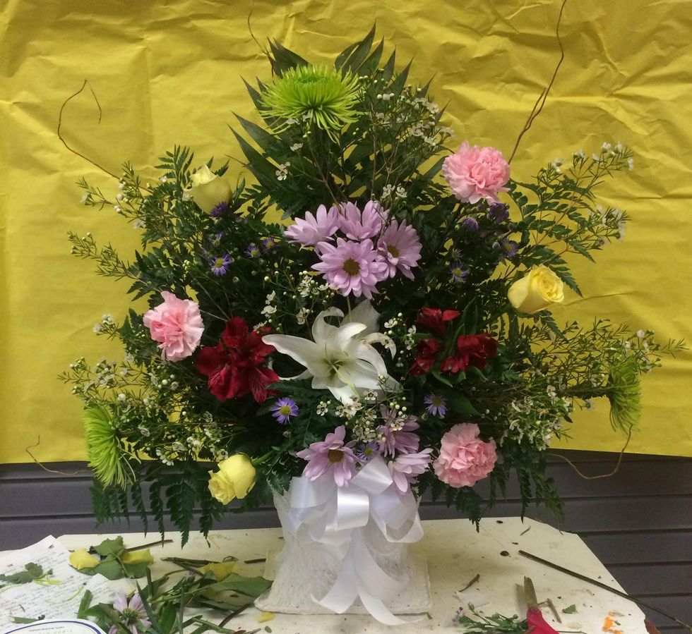 Place the bow in the front and you're done! you have successfully made a big, beautiful spray arrangement!