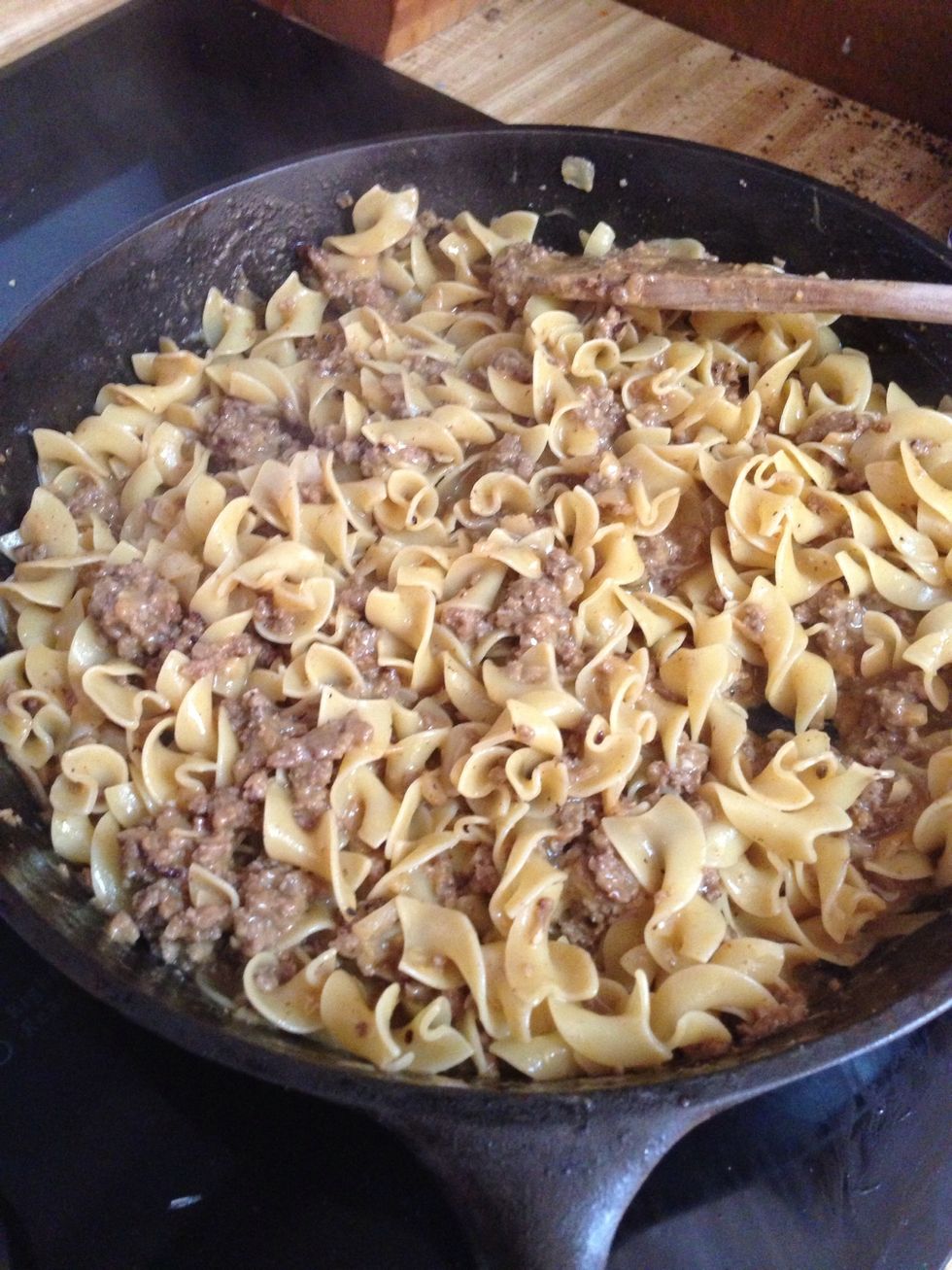 Cook your beef, onions, and garlic. I omitted the butter.