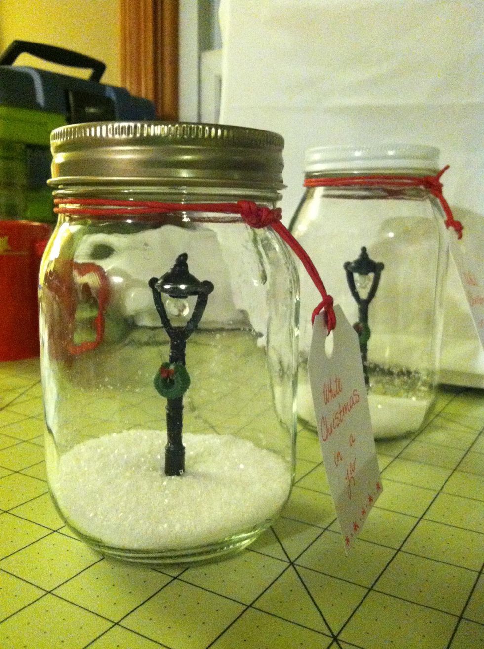 You can put anything you want in these jars. I found my trees and lamp posts at hobby lobby in the doll house section.