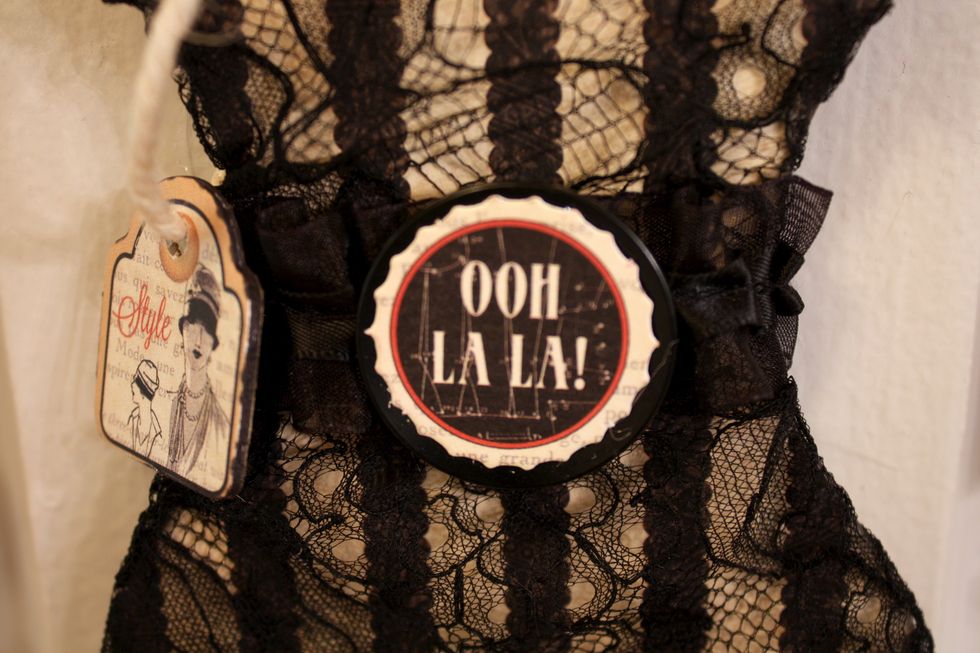 I decided to add some last minute embellishments adding some Graphic 45 Couture Chipboard tags and twine