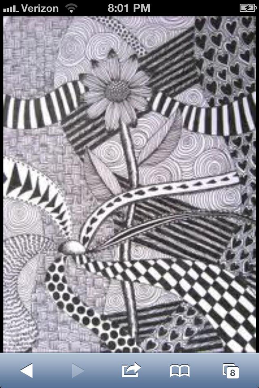 TIP: anyone can draw a Zentangle!!! Just draw creative patterns and lines. It's easier than it looks. Take time to use details.
