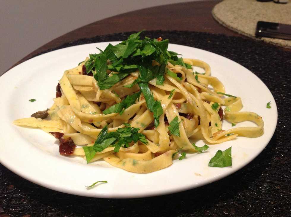 Cut into fettuccine and hung out to dry.