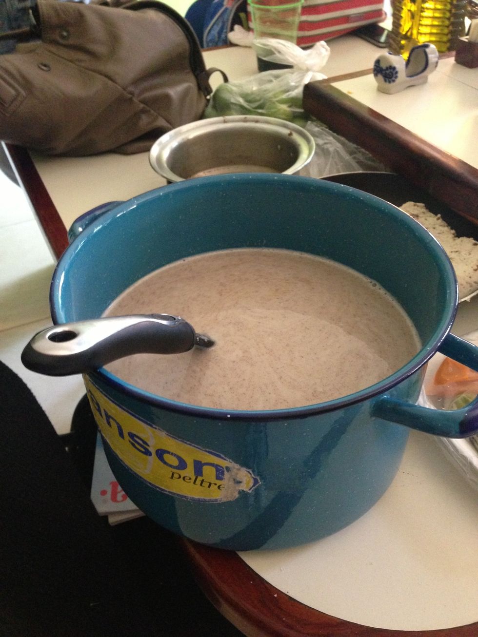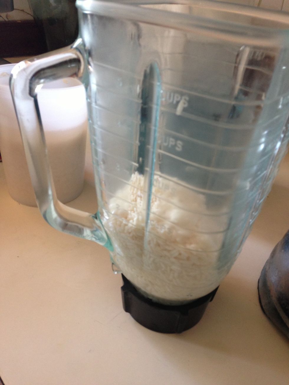 add 2 cups of water, cinamon and blend. You will not blend all rise just a portion