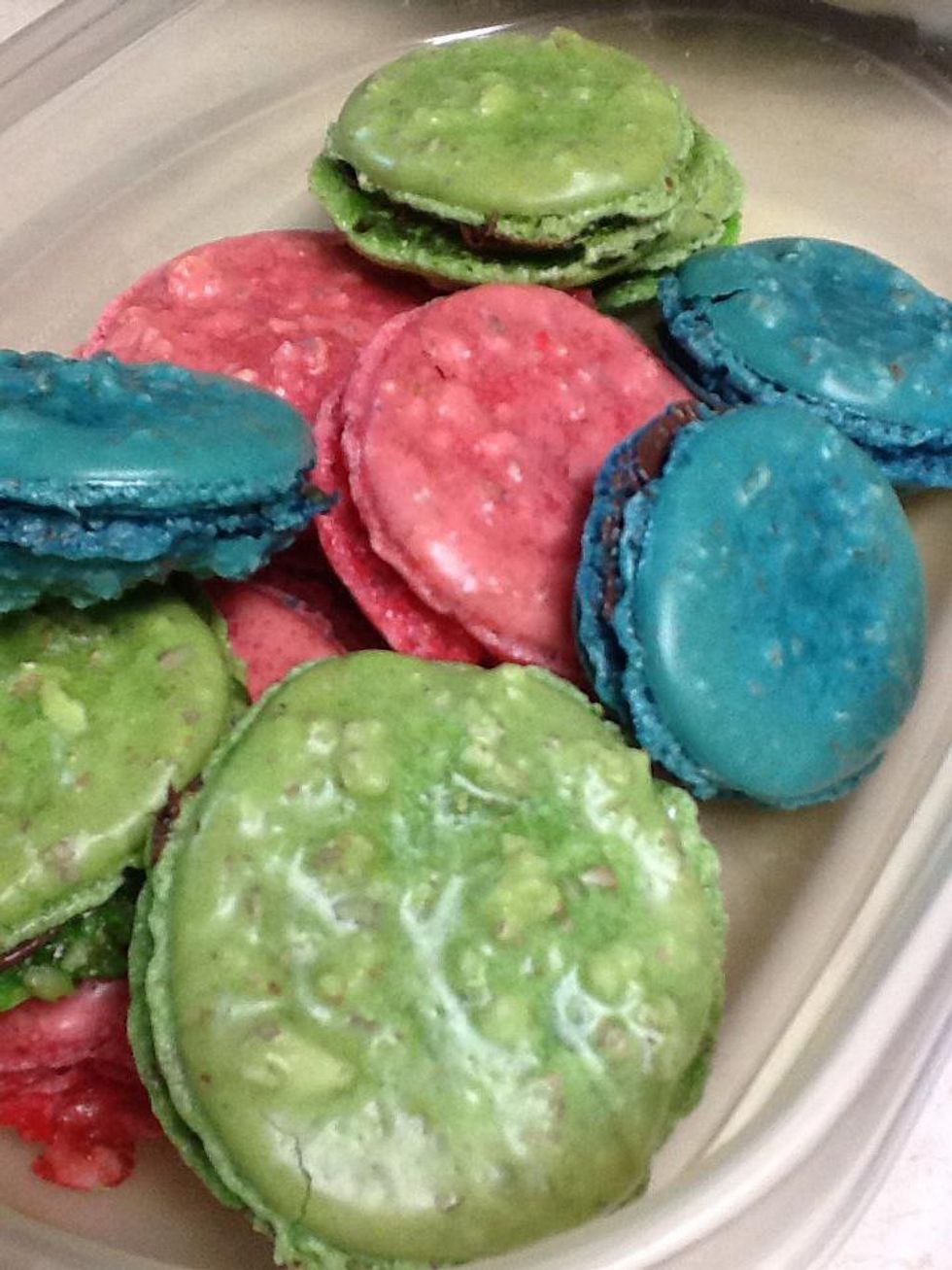 Blend almonds in a blender for 7 seconds or as long as you want to. The chunkier almonds, the bumpier texture of macaroons.