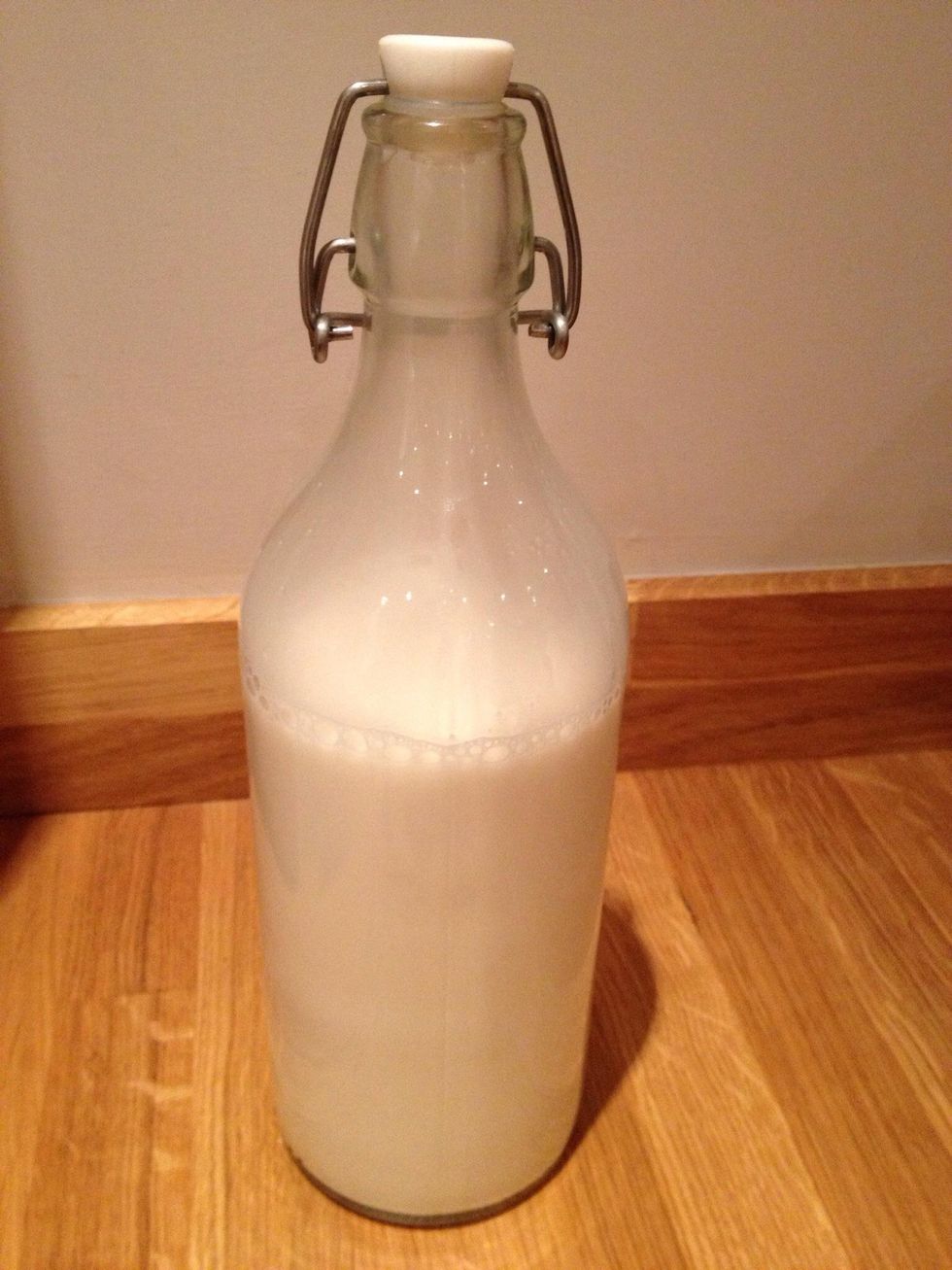 Pour into an airtight bottle or jug. I poured it back into the blended as it was easier to pour from the jug than a bowl. Keep refrigerated. Yum!