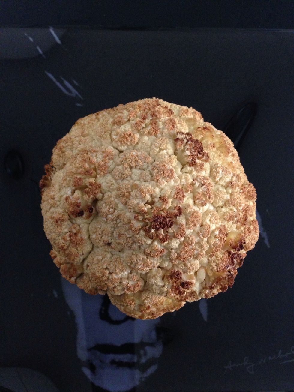 Just whole roasted cauliflower. BEAUTIFUL, APPETIZING AND IMPRESSIVE. Very crunchy with a roasted taste Serve it with fish or meat. With vinaigrette, mayonnaise, tahini, walnut sauce etc..