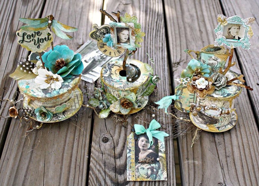 I went to my yard and gathered roots and moss. Picked a few embellishments and my color bloom spray in soft teal.