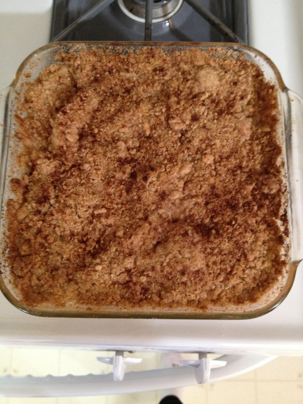 Crumble the flour mixture on top of the apples until the apples are fully covered
