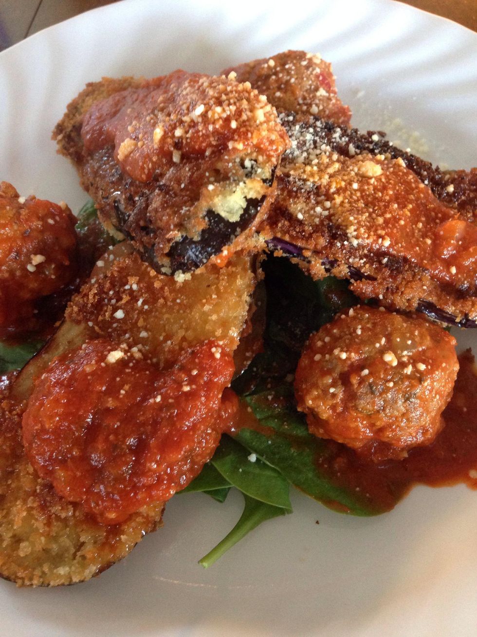 When finished, top with some tomato sauce! I added some meatballs, and spinach! Yummy!