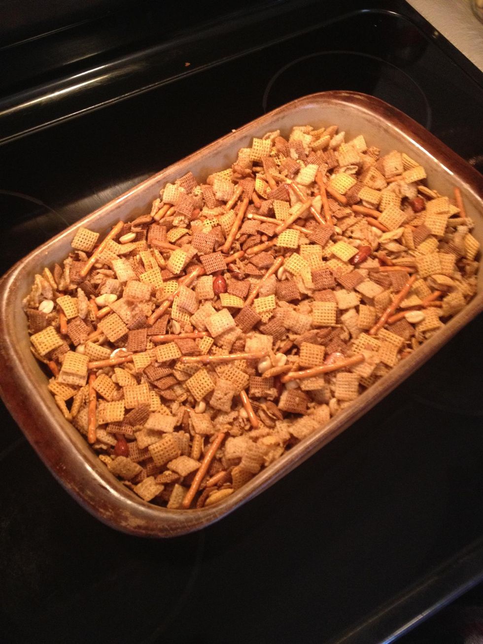 Pre heat oven to 250 degrees. Bake Chex mix for 1 hour & 15 mins. Make sure to stir it every 15 mins. I promise this is way better than making it in the microwave!!!!!!!!