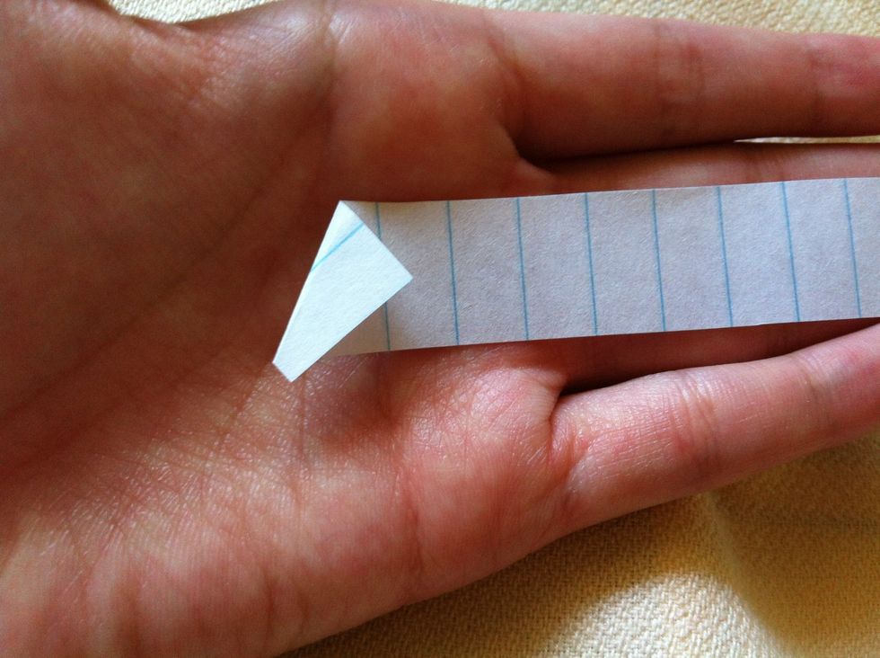 Fold at least 9 full triangles ( the first half one doesn't count) 10 if you're using glue instead of tape