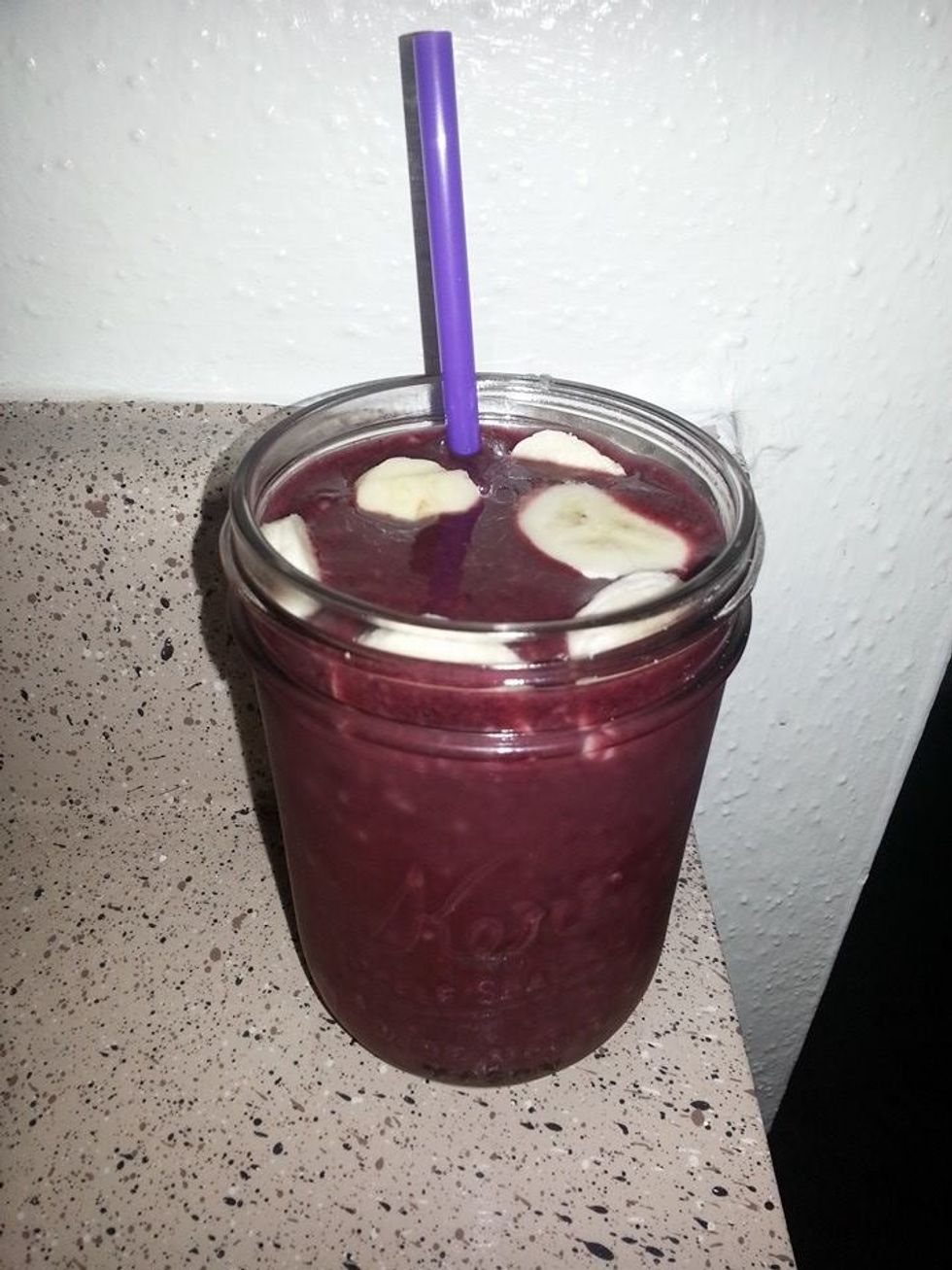 Once your smoothie is blended, you will pour into a glass (I use my mason jar)