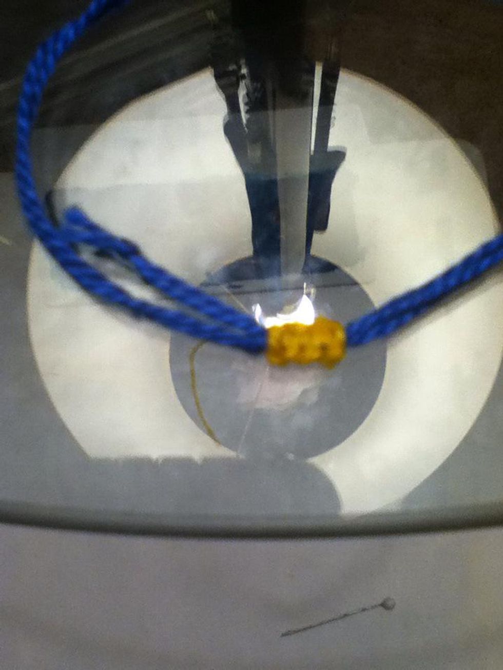 Make your bracelet.Tie a knot about 2 inches down from the end of the bracelet. Trim off the end leaving about a half centimeter after the knot. Repeat on other side.Position bracelet as pictured above.An adjustable knot!