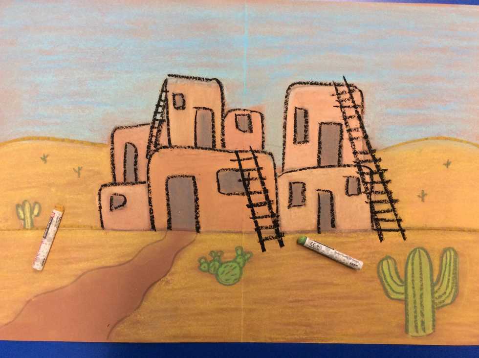 Use your chrome book to look at some examples of Adobe Pueblos. Use a pencil to draw the bottom buildings of your Pueblo.