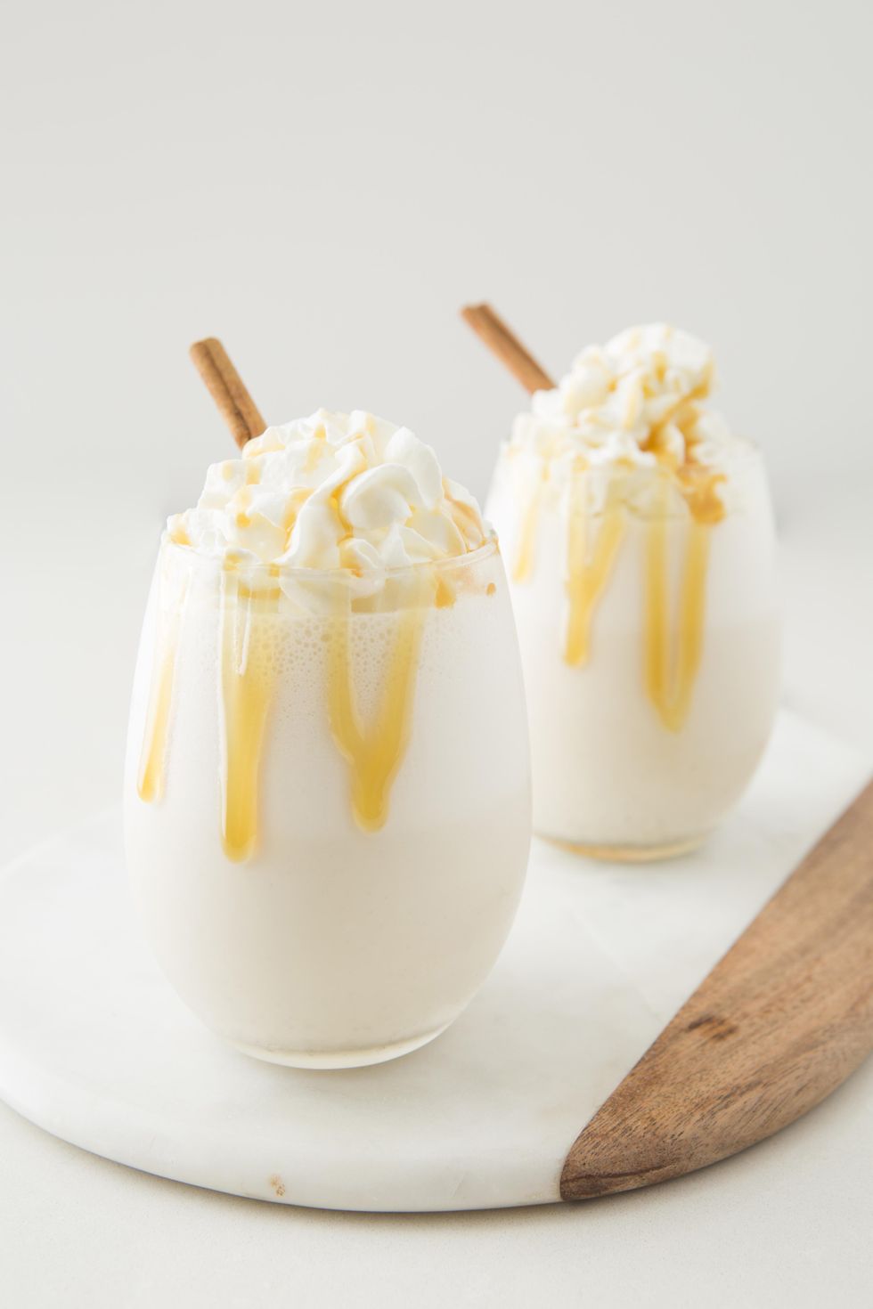 After dividing the mixture between glasses, top generously with whipped cream and drizzle with butterscotch sauce.