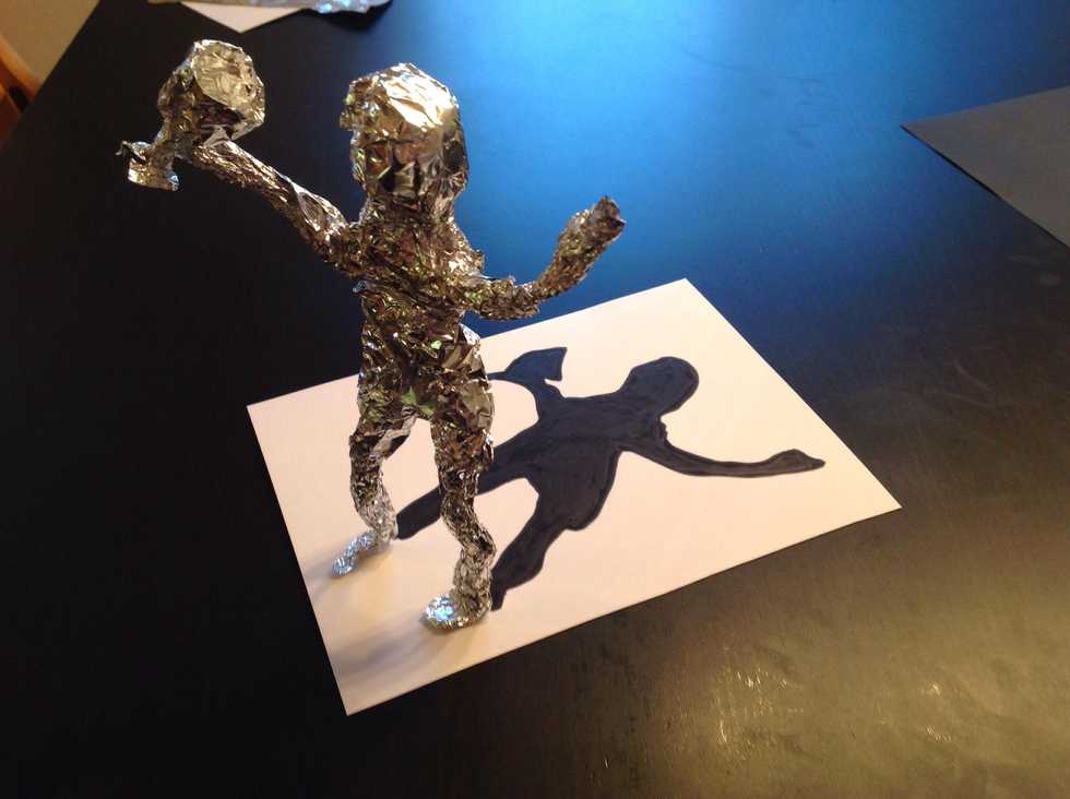 Now you can add some more foil to the head and the rest of the body, as much as you like. And start bending the body into a position that expresses the feeling you want it to express, happiness, anger
