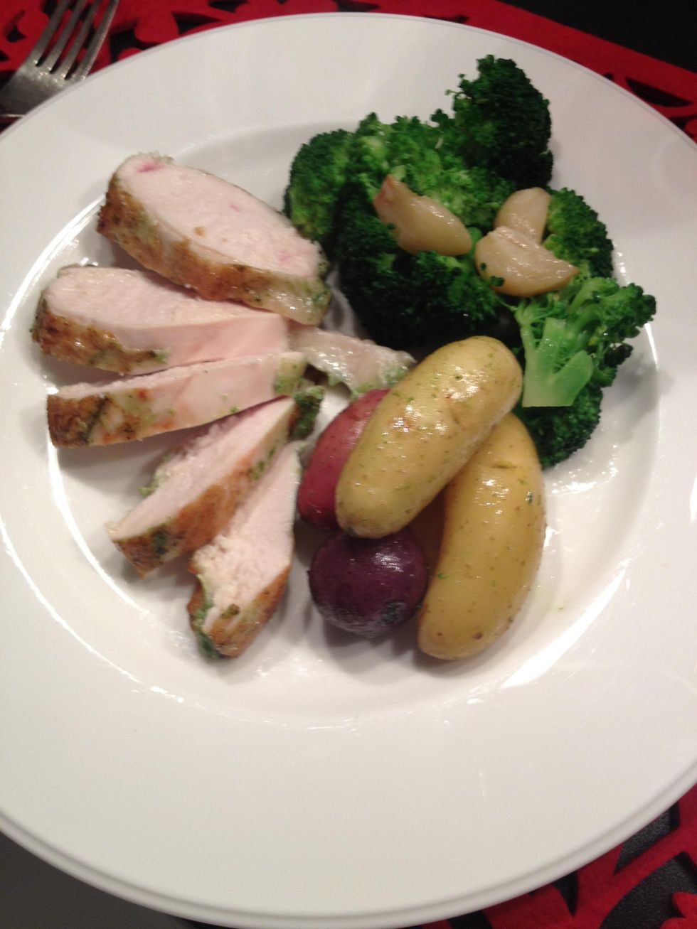 Check the chicken, get it out and let it rest for a minute or two...