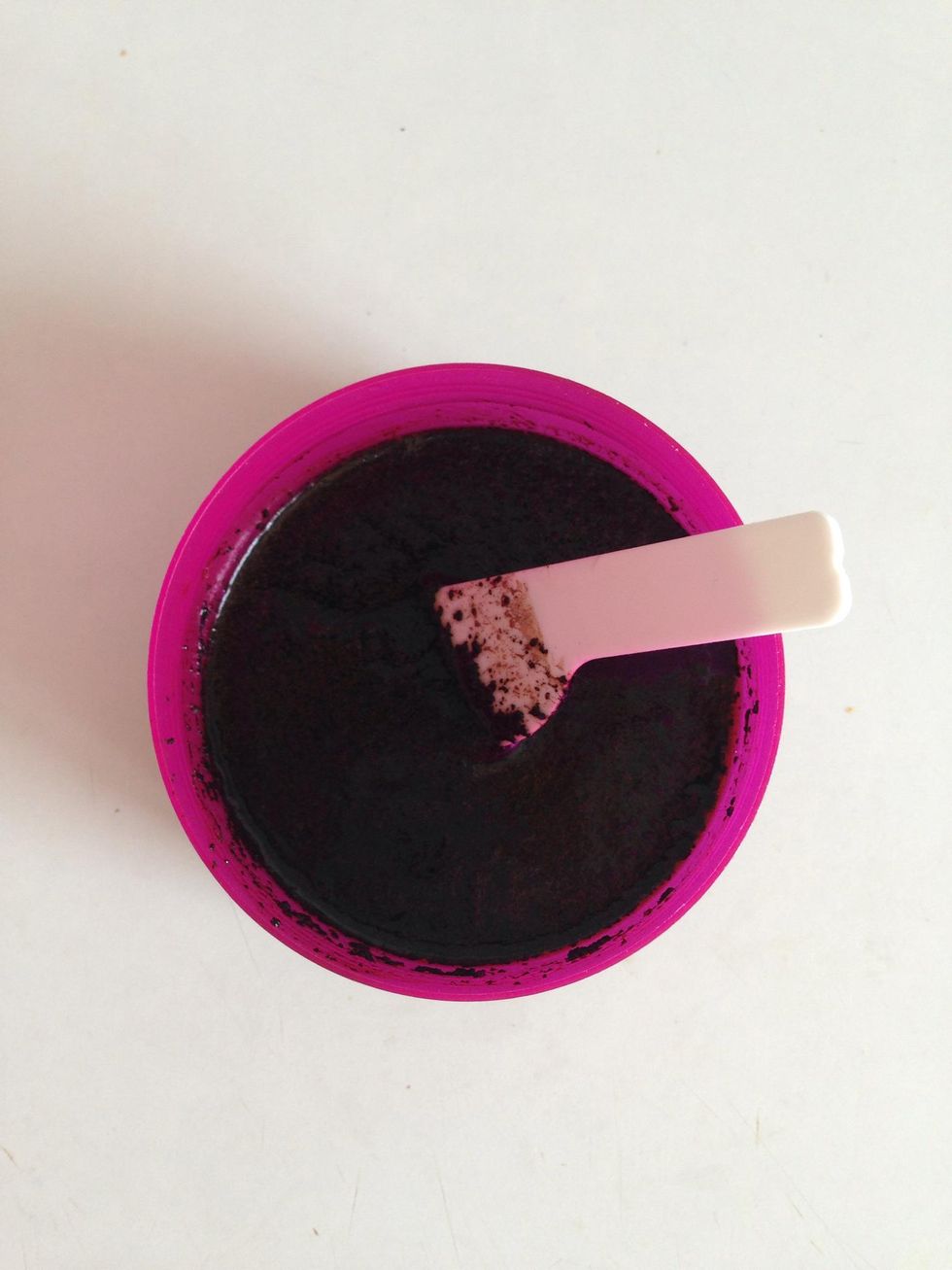 Brew 2 tbsp of ground coffee. Filter coffee and take off all coffee grounds. Wait for 15 min to cool it down (time for drink a cup of coffee) and add coffee grounds to the oil and sugar mix.