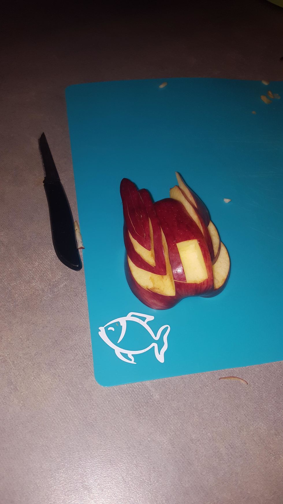 Cut another half of the apple on the same side