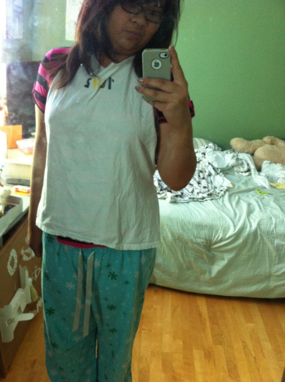 Then lay it on a table(or bed/flat surface) and finish marking the neckline.