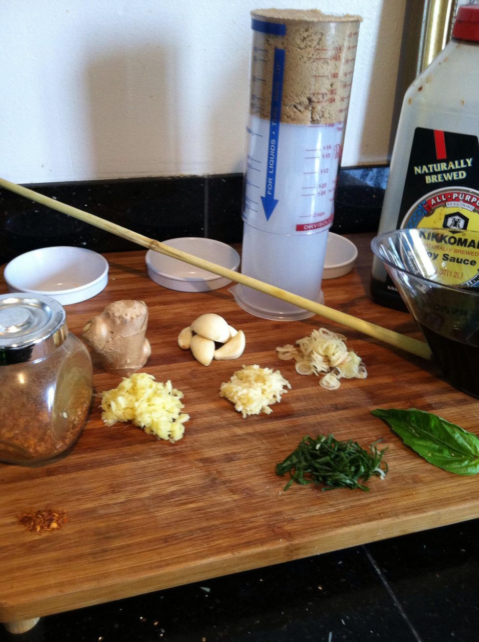 Pour into container and add chili flakes, basil and enjoy . You can use as a marinade, in a stir fry or as a dipping sauce.