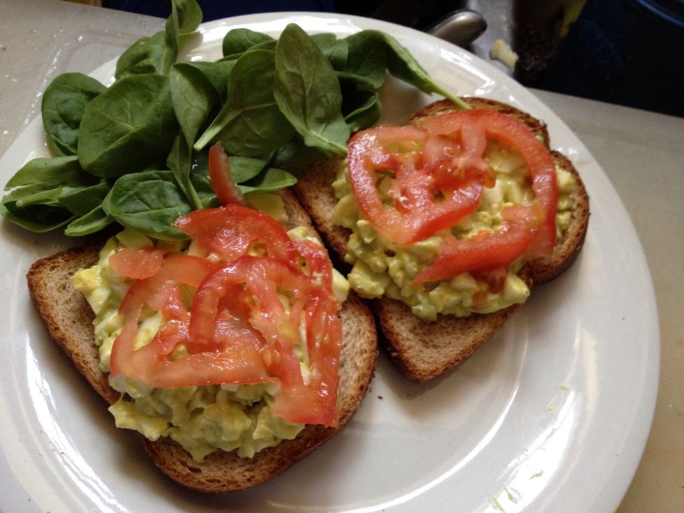 I toasted some bread, sliced half a tomato and had a side of baby spinach.... Enjoy :D