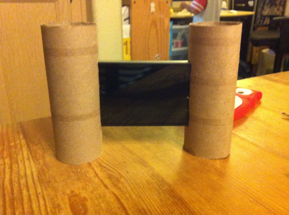 Voila! An awesome iPhone Stand. I would show you while the phones on but my dad has a password...