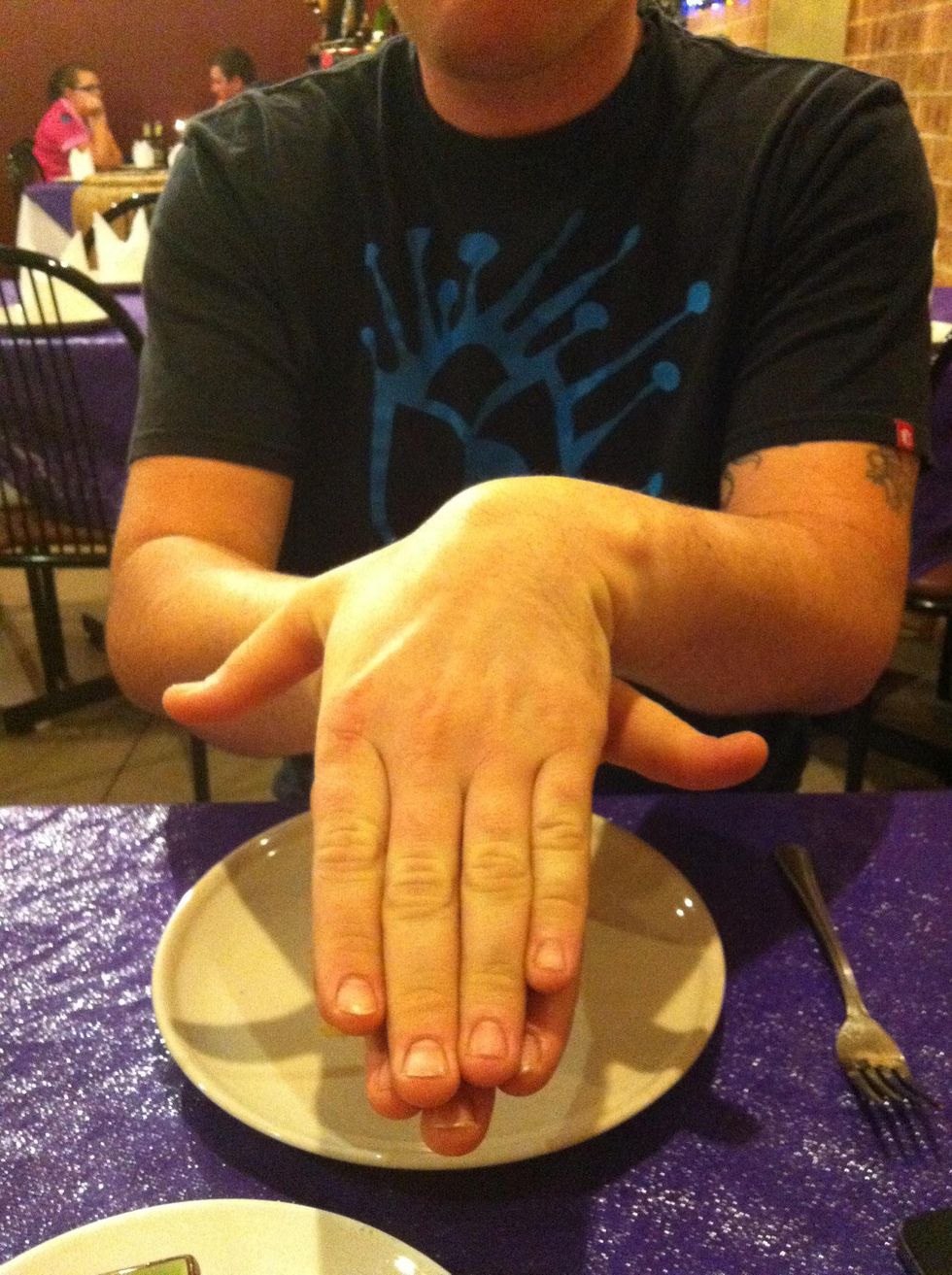 In an awkward situation using both your hands to create the shape of a turtle aka the "awkward turtle"One handTwo handAWKWARD TURTLE