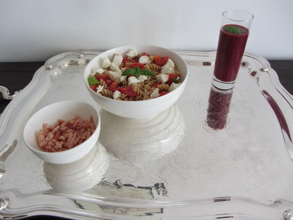 Wash the tomatoes, mozzarella and basil. Chop them up.