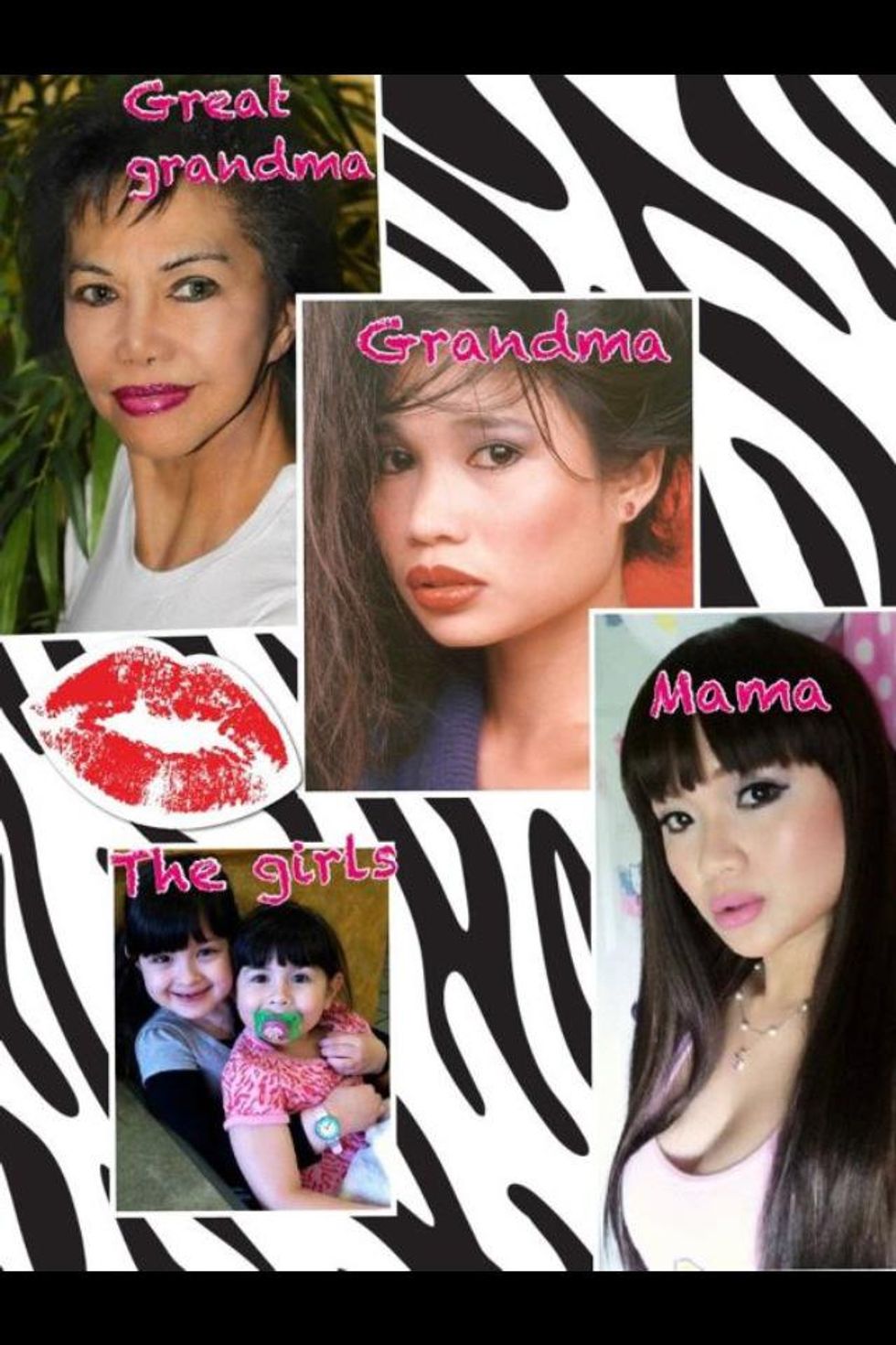 Yes, these are my girls. My mom- their G-MA, my grandma, the girls GG- MA. We have the same collagen lips effect.. And although I am in my mid 30's, I still feel young. Make-up is a hobby of mine.