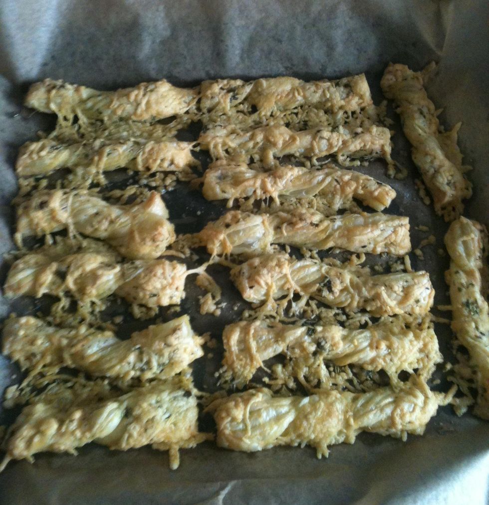 Then, twist the strips twice to get the 'swirly' look. Then put on the baking tray with paper.