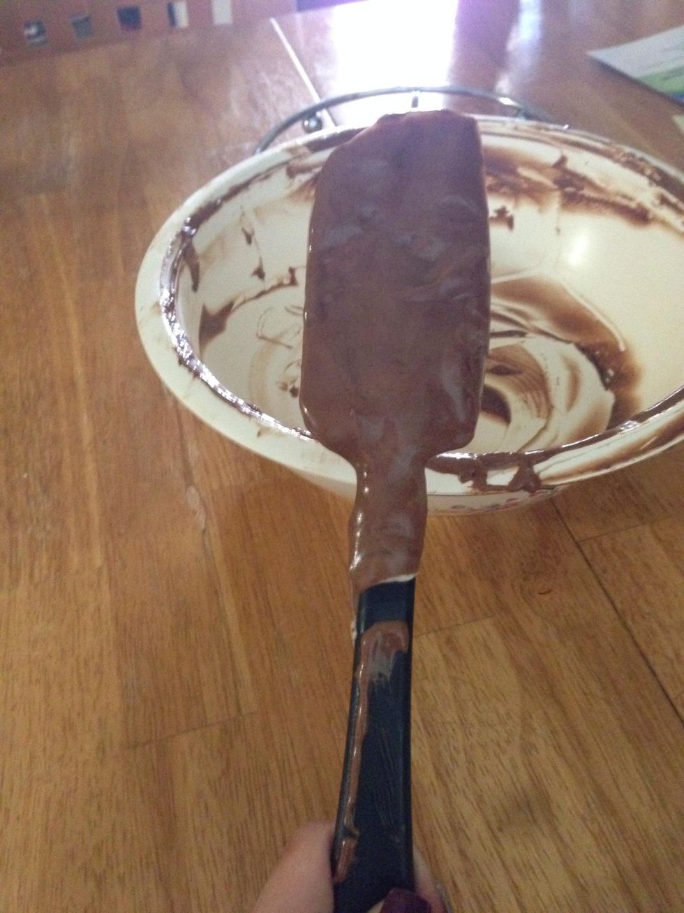 sorry, forgot to document melting the chocolate! in a microwave safe bowl melt 3 cups of semi sweet chocolate, I did 25 second intervals and mixed then tempered the eggs