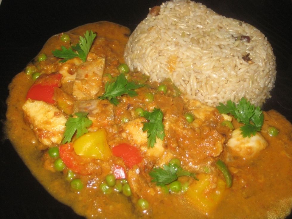 Pour the cream into the curry sauce and add you salt to taste. Add as much coconut as you like.