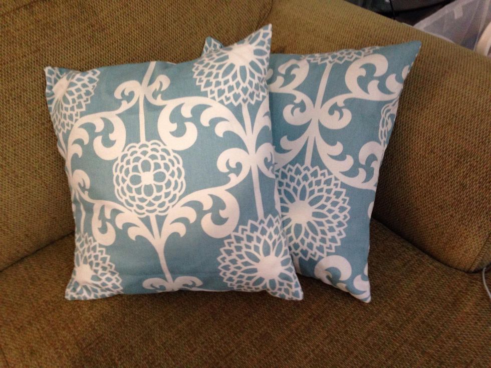 Supplies. You'll need one shape 2" bigger than your pillow. And two the same width, but half as long plus a few inches. My pillow is 18x18 so the fabric is 20x20 and 20x14 in my case.