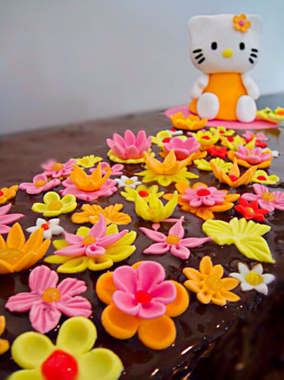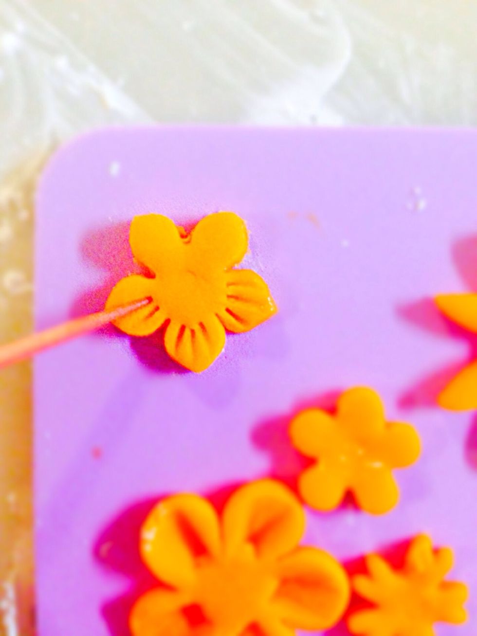 Place some icing as stamen and glue your flowers with water onto your cake. Easy right?
