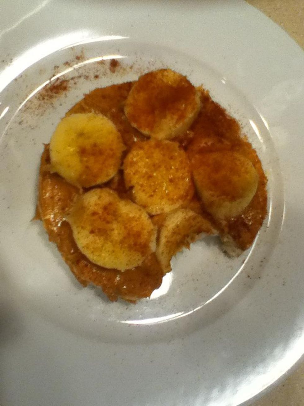 Gather your ingredientsPlace peanut butter on rice cakeSpread the peanut butterChop the banana into centimeters slicesPlace the banana slices on to your rice cake(Optional) add cinnamonEnjoy!