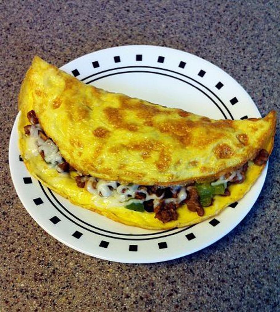Stir the eggs and egg whites lightly. Then, cook them in skillet until set (medium heat).