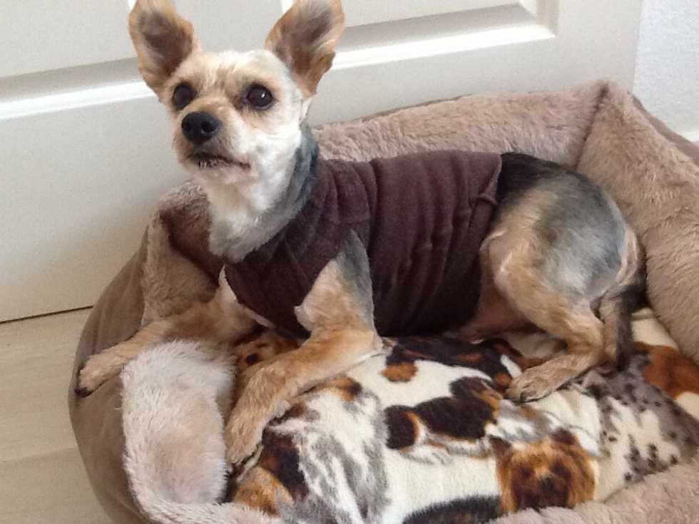 ONE PAIR OF OLD WOOLY TIGHTS, CUT AS DIRECTED HERE. THIS WILL FIT MY "CHORKIE", BUT YOU WILL HAVE TO ADJUST FOR A LARGER/SMALLER DOG.