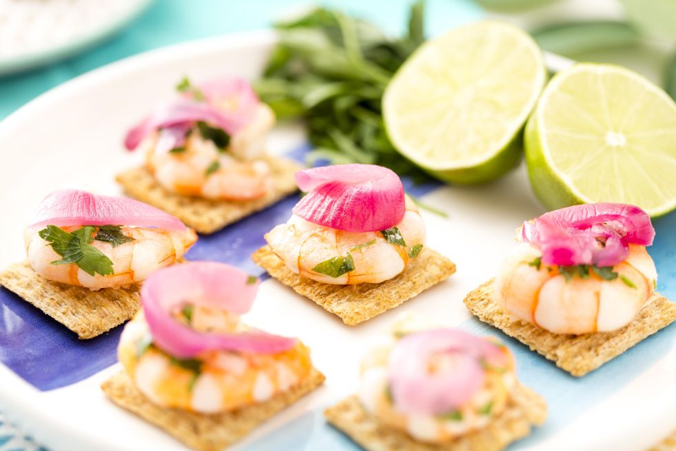 Add a piece of shrimp to a TRISCUIT Cracker.